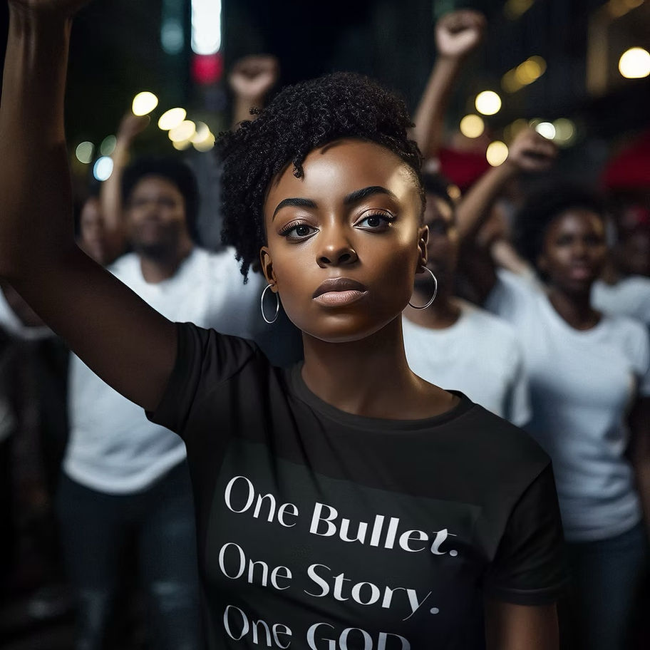 One Bullet, One Story, One God — this shirt represents the lives impacted by violence, the stories that deserve to be heard, and the faith that brings healing and hope. Every purchase helps support families and communities affected by gun violence.